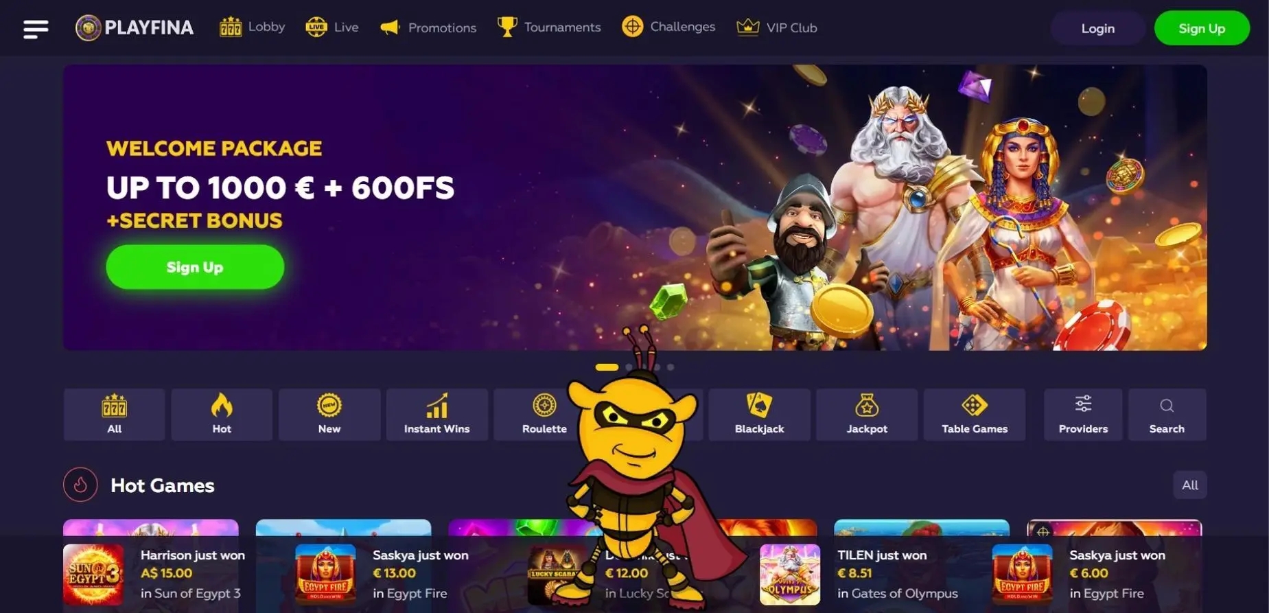Free Spins: Playfina often offers free spins on popular slot games as part of their promotional offers, giving players the chance to win real money without spending a cent.