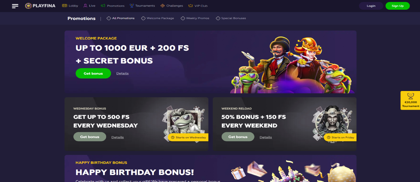 These free bonus offerings add an extra layer of excitement to your gaming experience at Playfina and give you more chances to win big without breaking the bank. Make sure to keep an eye out for the latest promotions to take advantage of these generous bonuses!